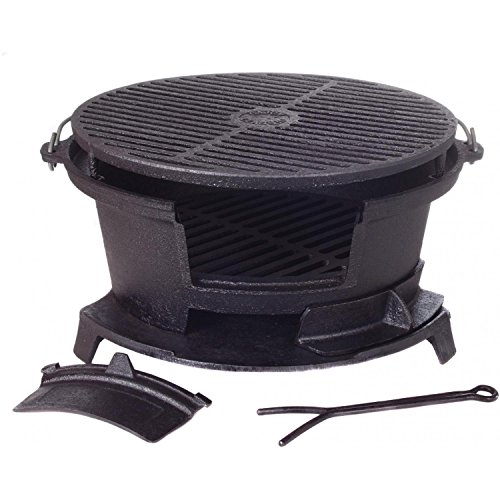 Cajun Cookware Round Seasoned Cast Iron Charcoal Hibachi Grill - Gl10447