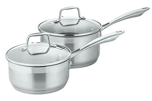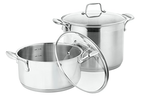- Shatter-resistant tempered glass lids with stainless steel rims allow you to monitor the cooking process without losing moisture and flavor