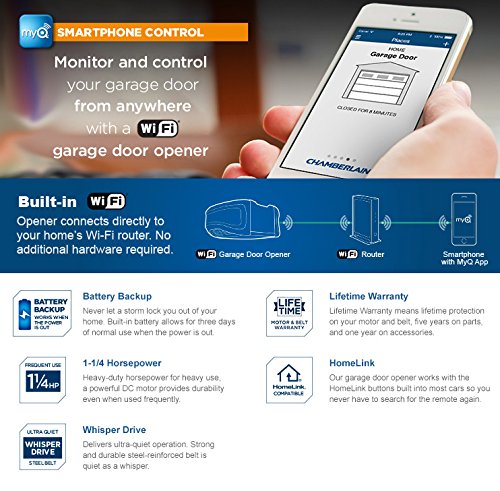 Chamberlain WD1000WF 1-1/4 HPS Smartphone Controlled Wi-Fi Garage Door Opener with Battery...